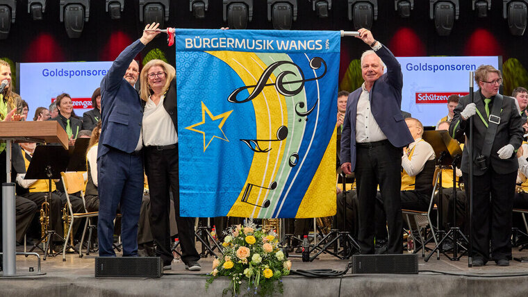 Ein Hoch auf die Neue: Bürgermusik Wangs weiht Fahne ein