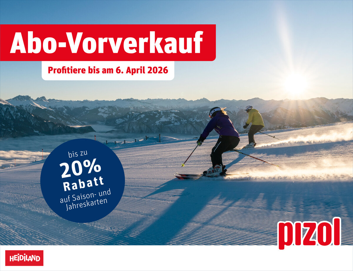 Bis Sonntag, 6. April 2026, profitieren die Gäste der Pizolbahnen beim Kauf eines Saison- oder Jahresabos von bis zu 20 Prozent Rabatt. Für einen bescheidenen Aufpreis sind beim Jahresabo viele zusätzliche Erlebnistage im Bergsommer inkludiert. Der Pizol bietet eine Vielzahl an Naturerlebnissen in einem der schönsten Ausflugs- und Wandergebiete der Schweiz.