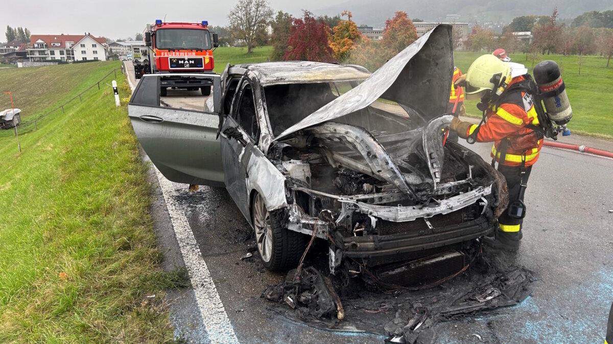 Als der 39-Jährige die Rauchentwicklung bemerkte, hielt er sein Auto umgehend an und verliess dieses, wie die Kantonspolizei St. Gallen am Freitag in einer Mitteilung schrieb. Kurze Zeit später kamen Flammen aus dem Motorenbereich.