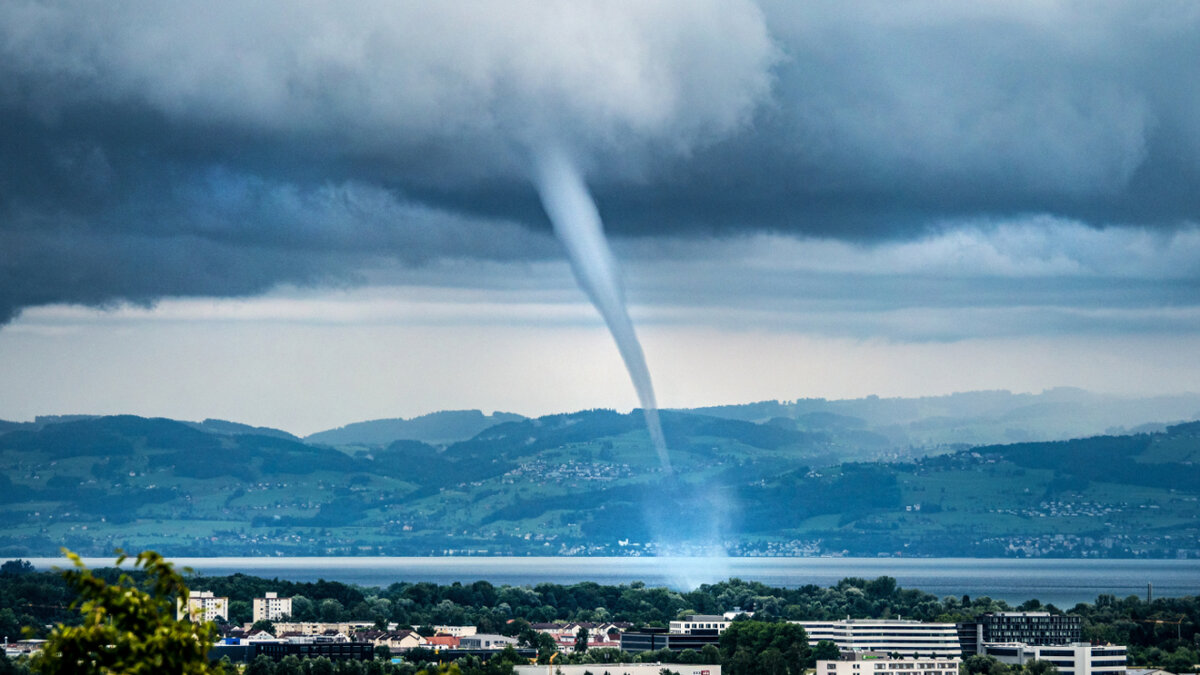 "Eine Wasserhose ist im Grunde ein kleiner Tornado über einer Wasserfläche", schrieb SRF Meteo auf seiner Webseite und veröffentlichte Leserbilder von dem Phänomen über dem Bodensee. Damit ein solcher Wirbelrüssel entsteht, brauche es eine warme Wasseroberfläche, kalte Luft in der Höhe sowie schwache oder unterschiedlich gerichtete Winde.