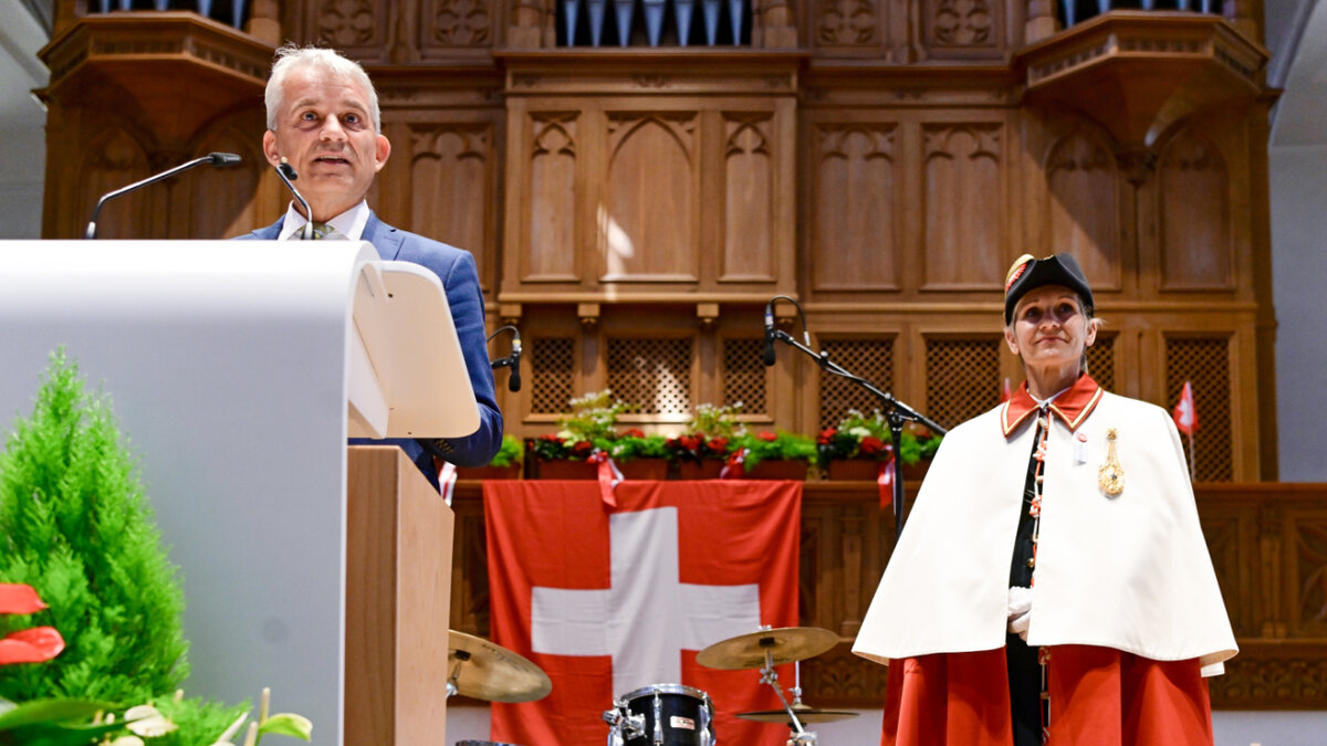 Nicht fehlen durften ein Lob auf die Schweizer Frauenfussballnationalmannschaft und ein Hinweis auf den Munot, das Schaffhauser Wahrzeichen. Die Festung sollte einst teuer aufgerüstet werden, der Westfälische Frieden habe den Plan aber überflüssig gemacht. "Es wäre schön, wenn heute wieder der Frieden dazwischenfunken würde", schloss der Bundesrat.