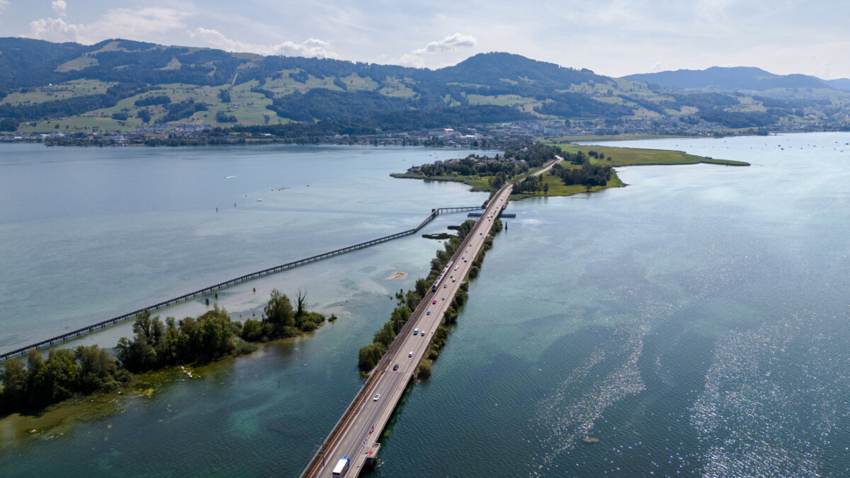 Drei Autos kollidieren auf dem Seedamm bei Rapperswil