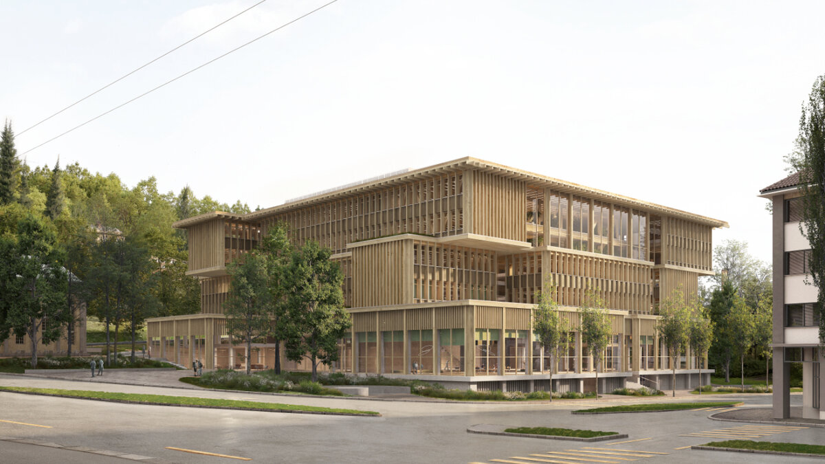 "Graber Pulver Architekt:innen" mit Büros in Bern und Zürich haben den bereits zweiten Wettbewerb für den neuen HSG-Campus am Rand der St. Galler Innenstadt gewonnen. Der Holzbau mit Platz für 3000 Studierende soll 2032 fertig sein.