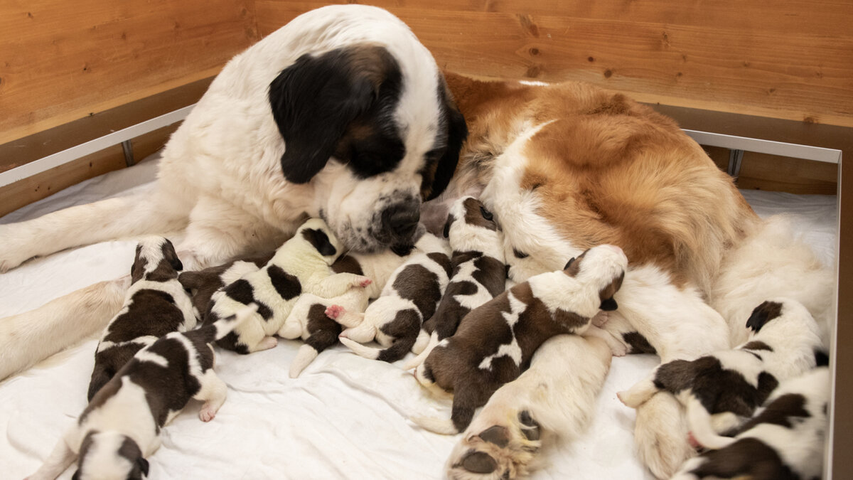 Elf Bernhardiner-Welpen in Martigny VS geboren
