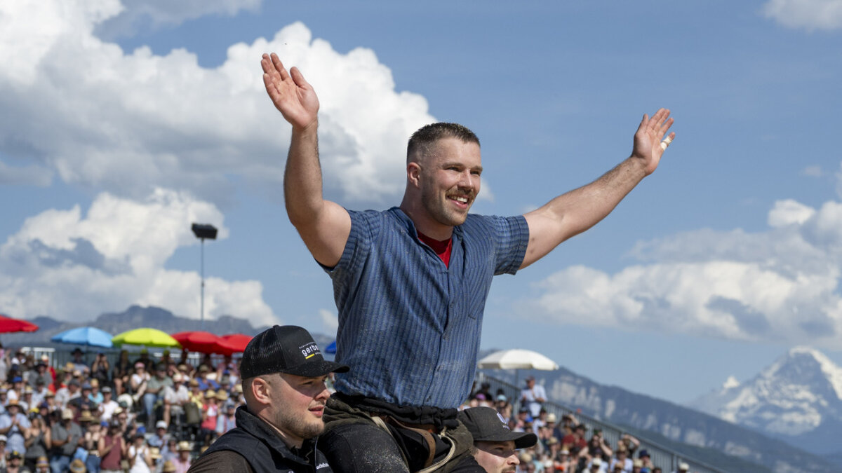 Fabian Staudenmann gewinnt das Mittelländische Schwingfest zum vierten Mal