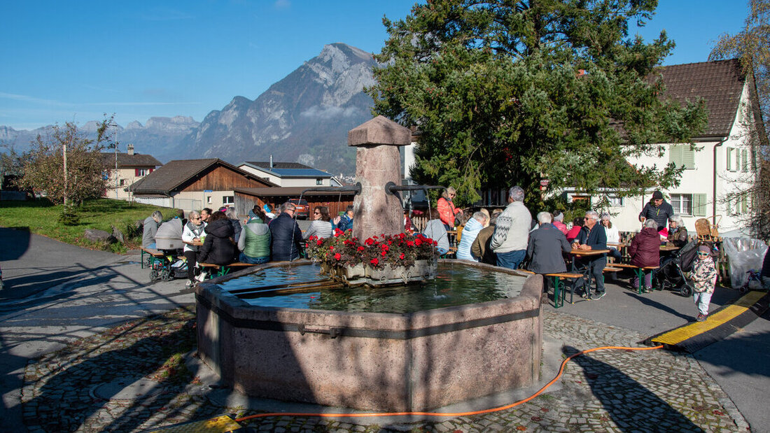In Vilters hat man sich auf dem Platz der Begegnung versammelt, um Punkt 11.11 Uhr das Motto für die nächste Fasnacht verkündet zu bekommen.