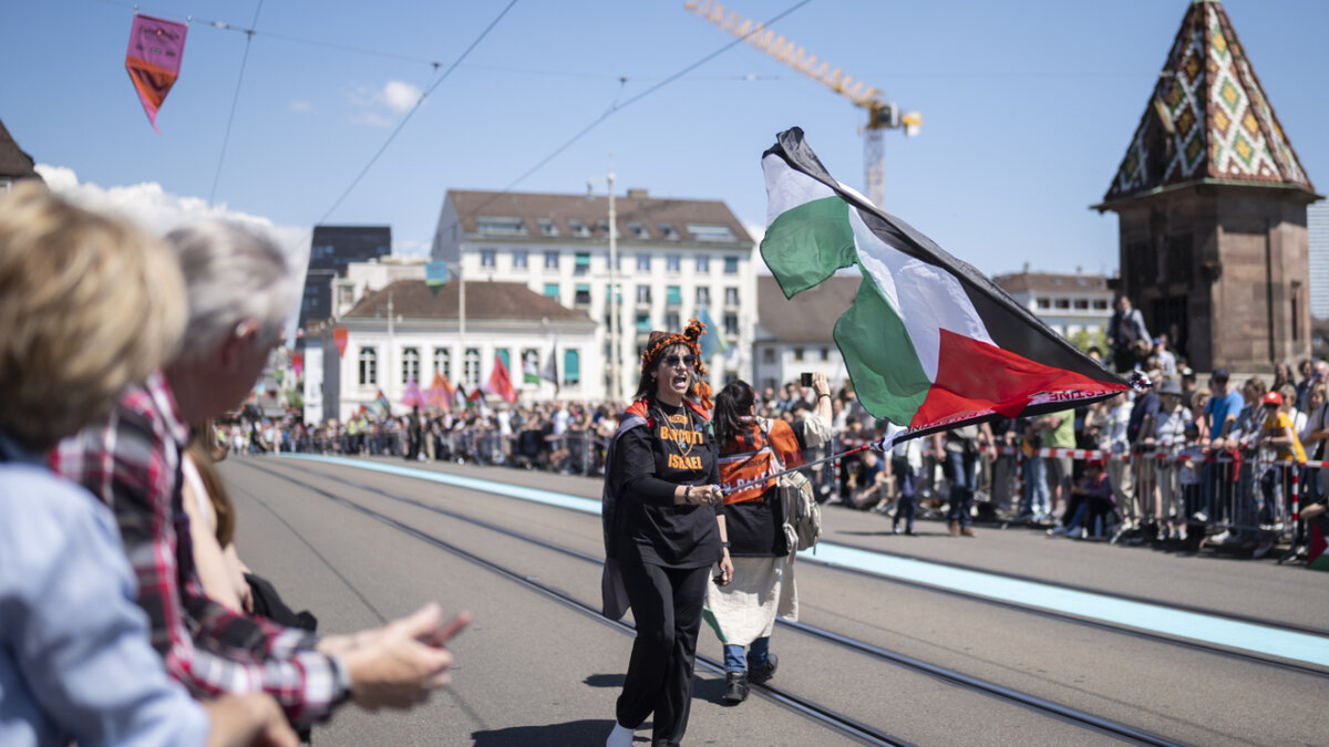 Bereits eine halbe Stunde vor dem Beginn der Parade hatten sich vor allem auf der Mittleren Brücke viele Tausend Schaulustige versammelt - darunter auch zahlreiche Palästina-Aktivistinnen und -Aktivisten mit der Palästina-Flagge. Sie verhielten sie sich zunächst friedlich und still, die omnipräsente Polizei liess sie gewähren.