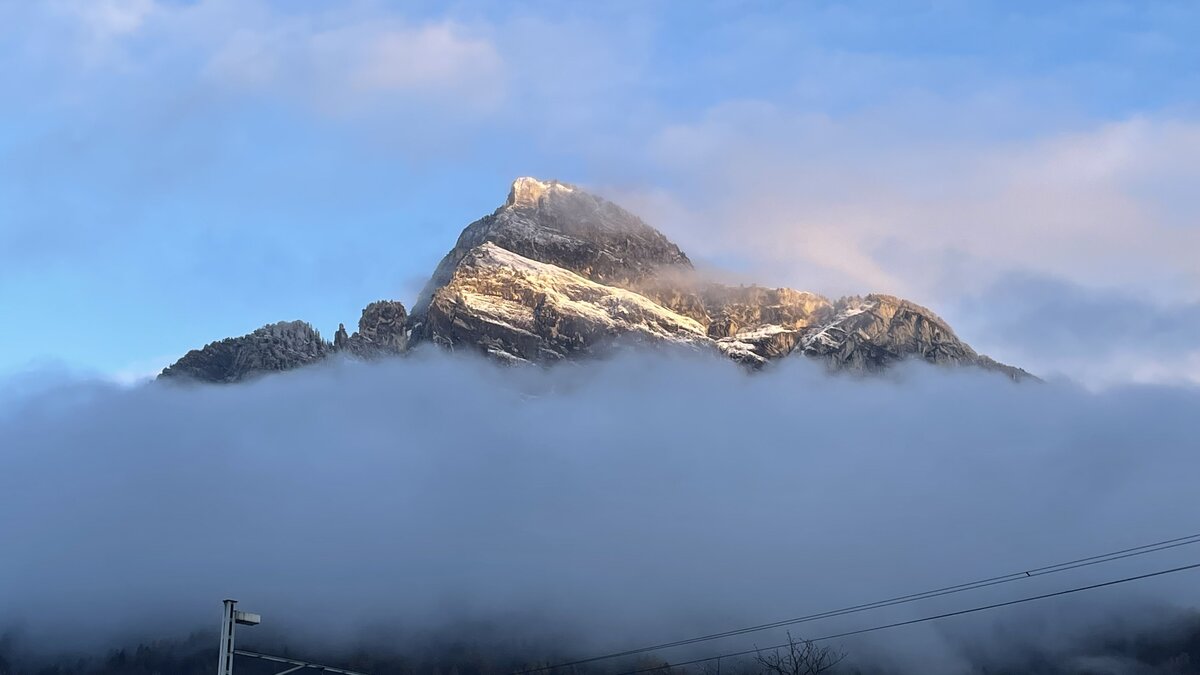 «Wunderschön wie der Gonzen aus den Wolken schaut – für uns alle schaut», schreibt Lorenz Bertsch zu seinem morgendlichen Schnappschuss.