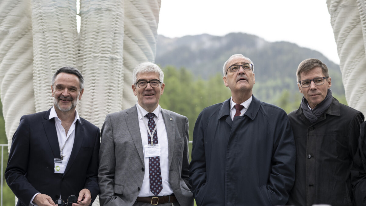 Der 30 Meter hohe Bau sei ein starkes Symbol, sagte der Schweizer Wirtschaftsminister Guy Parmelin am Dienstag in Mulegns GR. Er vereine Forschung, Leidenschaft und Intelligenz. Mit den präszisen Druckvorgängen in der ETH Zürich habe man den Betonverbrauch um die Hälfte reduzieren können. Dies sei die Zukunft.