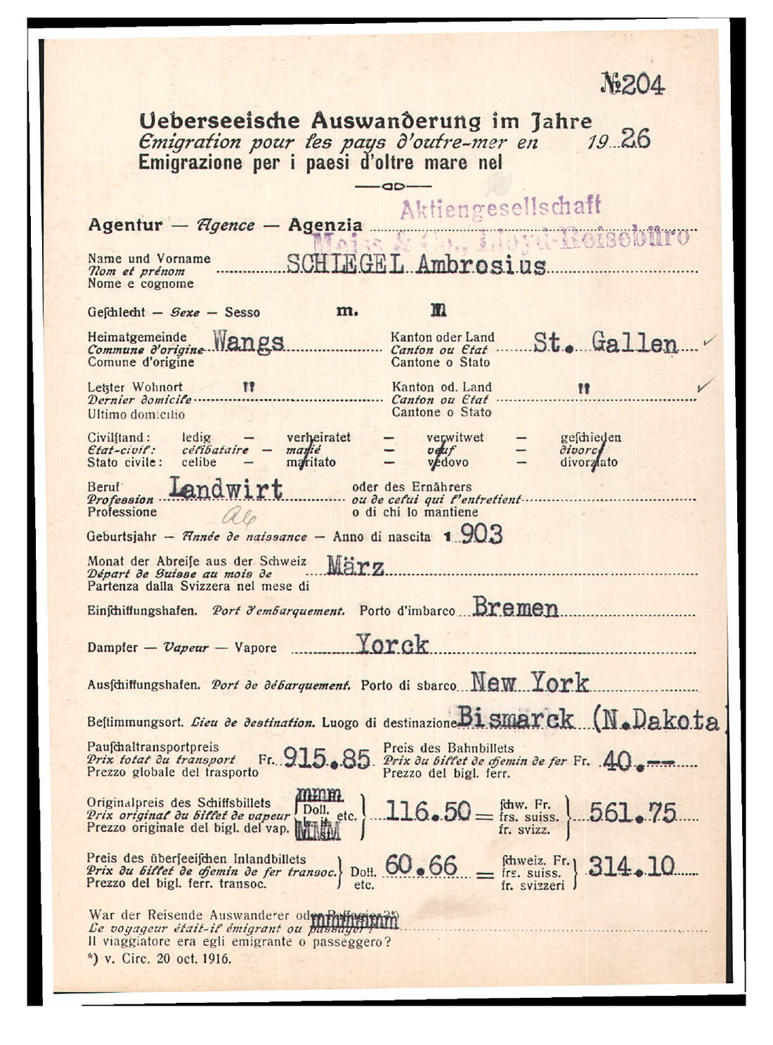 Maria Rutz aus Mels hat sich in ihrer Maturaarbeit an der Kanti Sargans mit Auswanderungen aus Vilters-Wangs in den Zwischenkriegsjahren beschäftigt. «Hauptsächlich junge Männer, die in der…