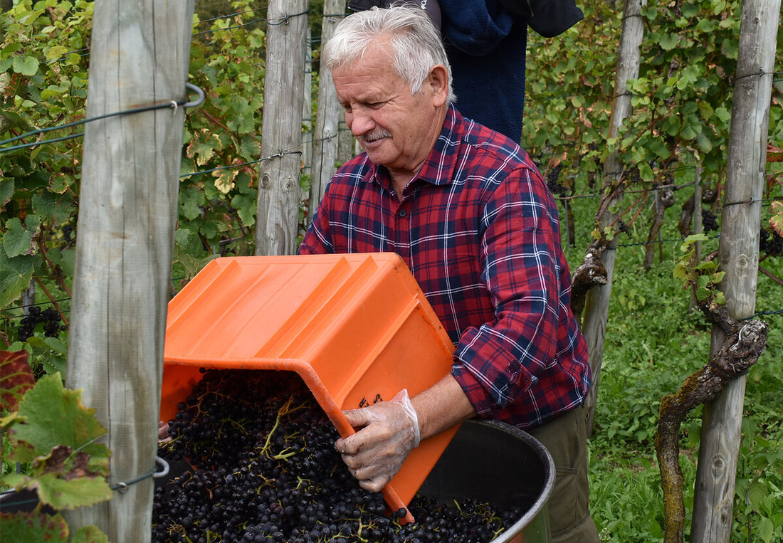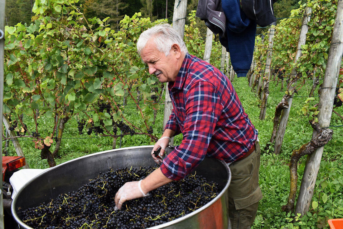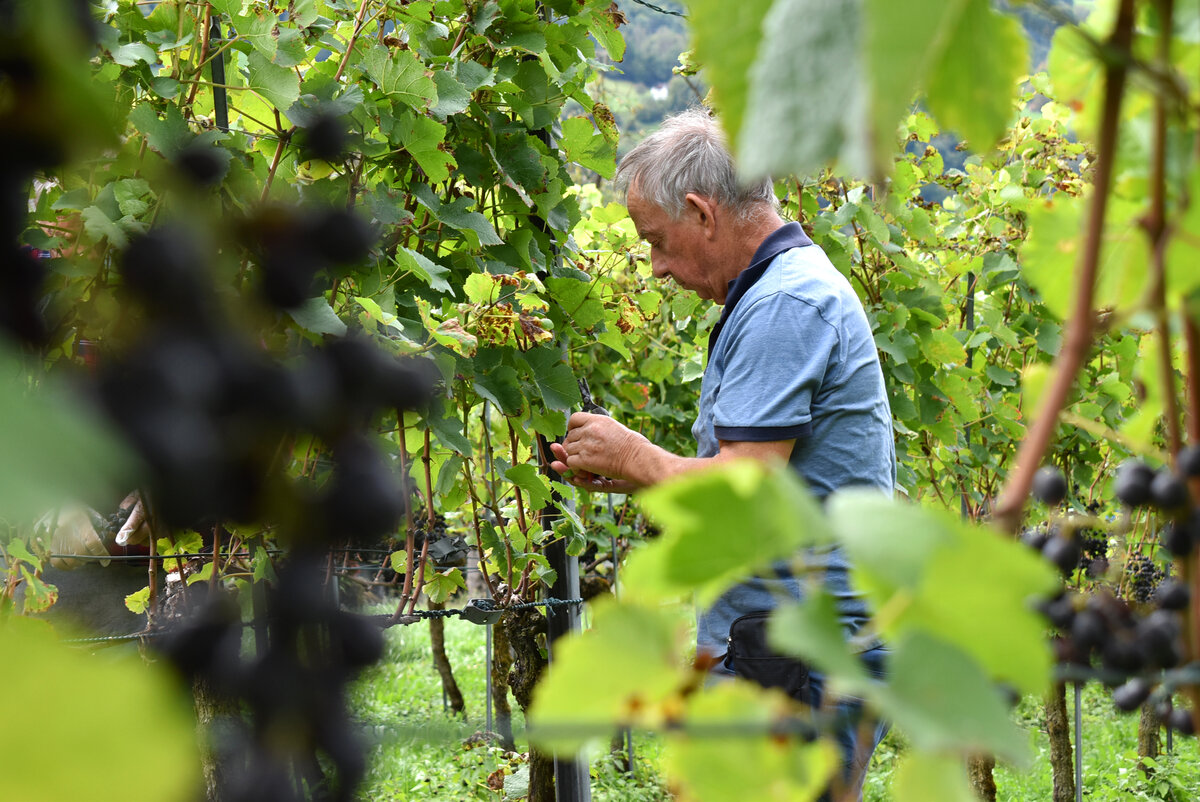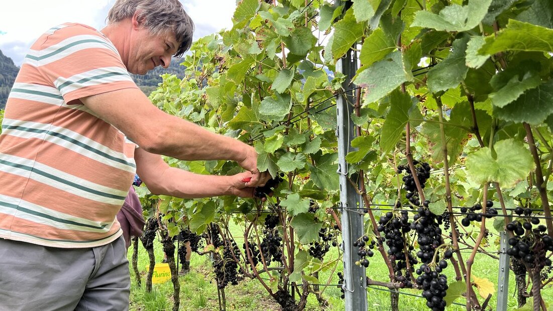 An einem Föhntag wie diesen Donnerstag gehen die Blicke schon mal bange nach oben – bleibt es noch einen Moment trocken? Die fleissigen Helferinnen und Helfer in den Rebbergen von Heiligkreuz liessen sich davon nicht beirren und waren konzentriert am Werk. Noch nie waren so früh so viele Trauben abgenommen. Mit der Qualität gaben sich die Verantwortlichen zufrieden, obwohl der Mehltau da und dort für Mehrarbeit sorgte.