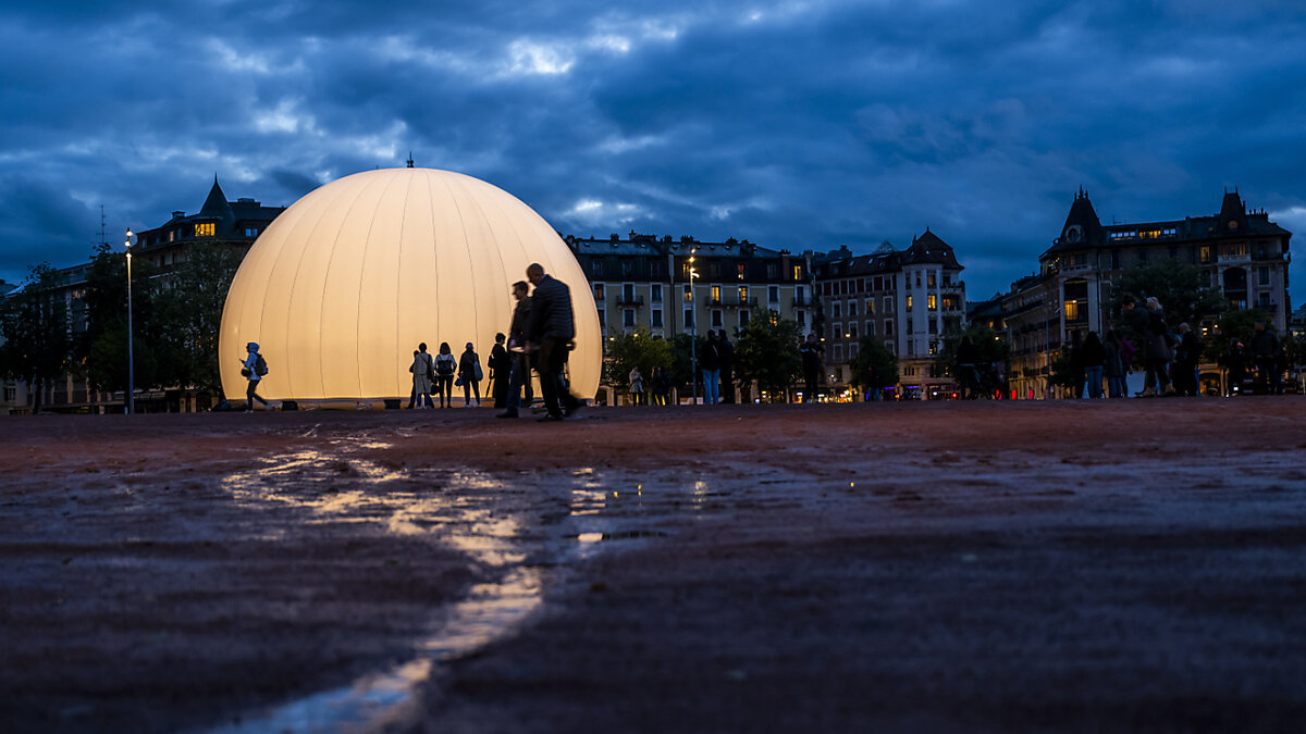 In Genf ist am Donnerstag die Kunstinstallation "Breathe" eröffnet worden. Diese Licht- und Klangkugel mit einem Durchmesser von 15 Metern lädt die Bevölkerung ein, das Tempo zu drosseln und langsam und im Einklang zu atmen, sobald die Nacht hereinbricht.