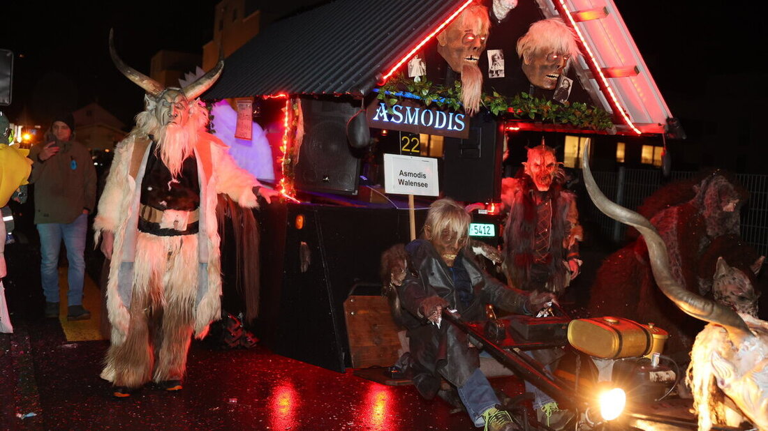 Guggen, Dämonen, fantasievolle Wagen und Märchengestalten prägten am Fasnachtsmontag den dritten Nachtumzug in Flums. Der närrische Tatzelwurm feierte den 50. Geburtstag der Fasnachtsgesellschaft mit…