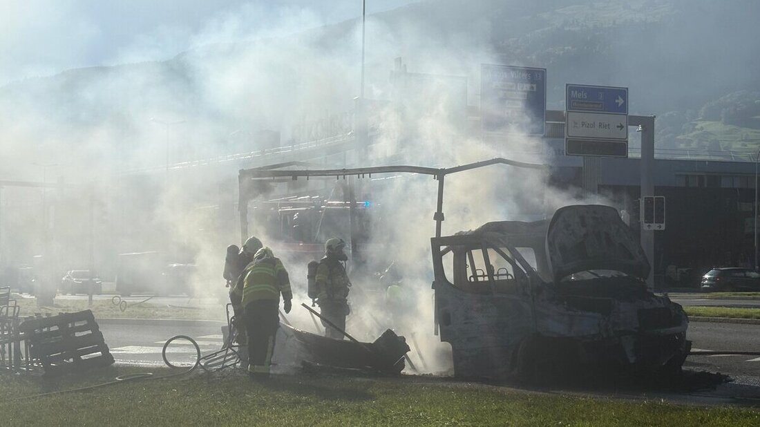Bei der Autobahnausfahrt Sargans, direkt gegenüber dem Möbel Pfister, ist am Mittwochvormittag ein Lieferwagen in Vollbrand geraten. Verletzt wurde niemand, aber die Rauchentwicklung war weitherum zu sehen und es kam zu Verkehrsbehinderungen.
