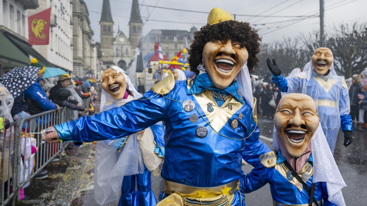 Seit dem Schmutzigen Donnerstag regiert in Luzern die "fünfte Jahreszeit". Am "Komische Frytig" und auch am "Rüüdige Samschtig" tauchten die Fasnächtlerinnen und Fasnächtler die Stadt in ihr farbenfrohes Brauchtum. Selbst teilweise starker Regen konnte die Feierlaune nicht trüben: Am Samstag strömten laut Polizeiangaben tagsüber rund 50'000 Fasnachtsfans in die Gassen der Stadt Luzern.