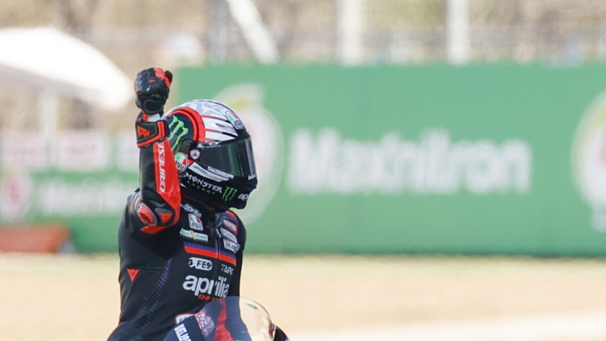 Aprilia feiert am Grand Prix von Brasilien in der MotoGP einen Doppelsieg: Es gewinnt der Italiener Marco Bezzecchi vor dem Spanier Jorge Martin.
