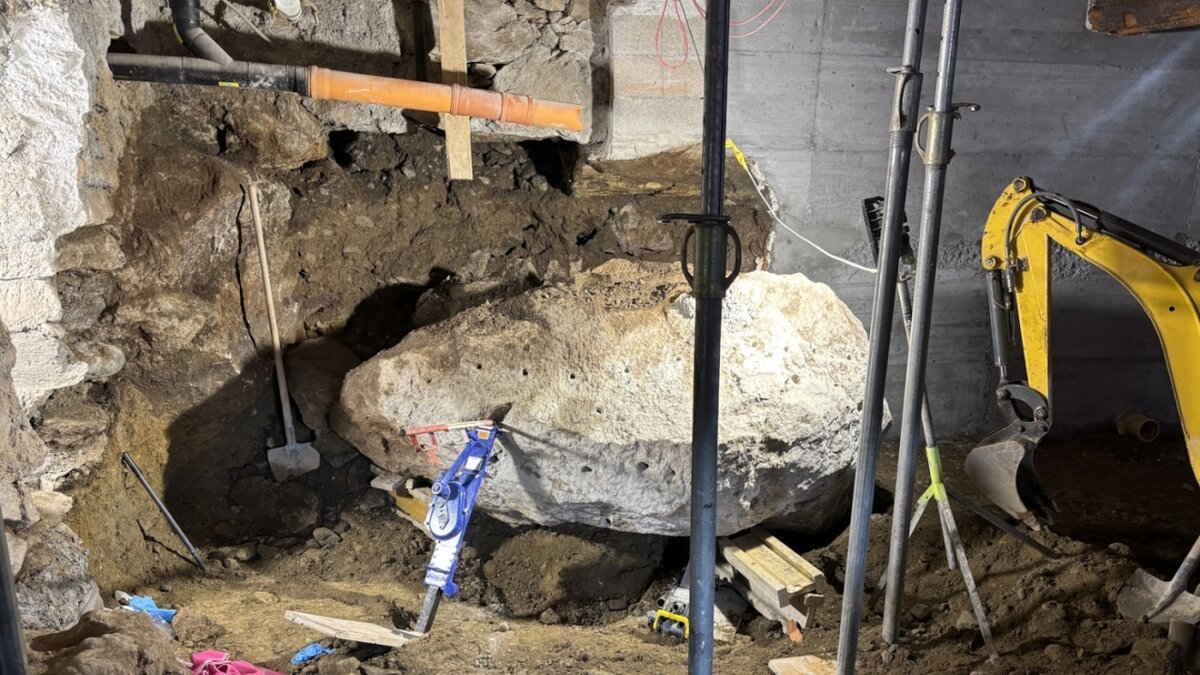 Der Arbeiter war im Engadinerhaus mit Umbauarbeiten im Keller beschäftigt gewesen, als sich der Stein löste. Seine Kollegen eilten ihm sofort zu Hilfe und stützten den Riesenstein, bis die Rettungskräfte eintrafen. Dies war sein "grosses Glück", so der Polizeisprecher. Auch der weiche Kellerboden habe sicher noch schlimmere Folgen verhindert. Der Verunfallte befand sich am Dienstag aber nach wie vor in kritischem Zustand.