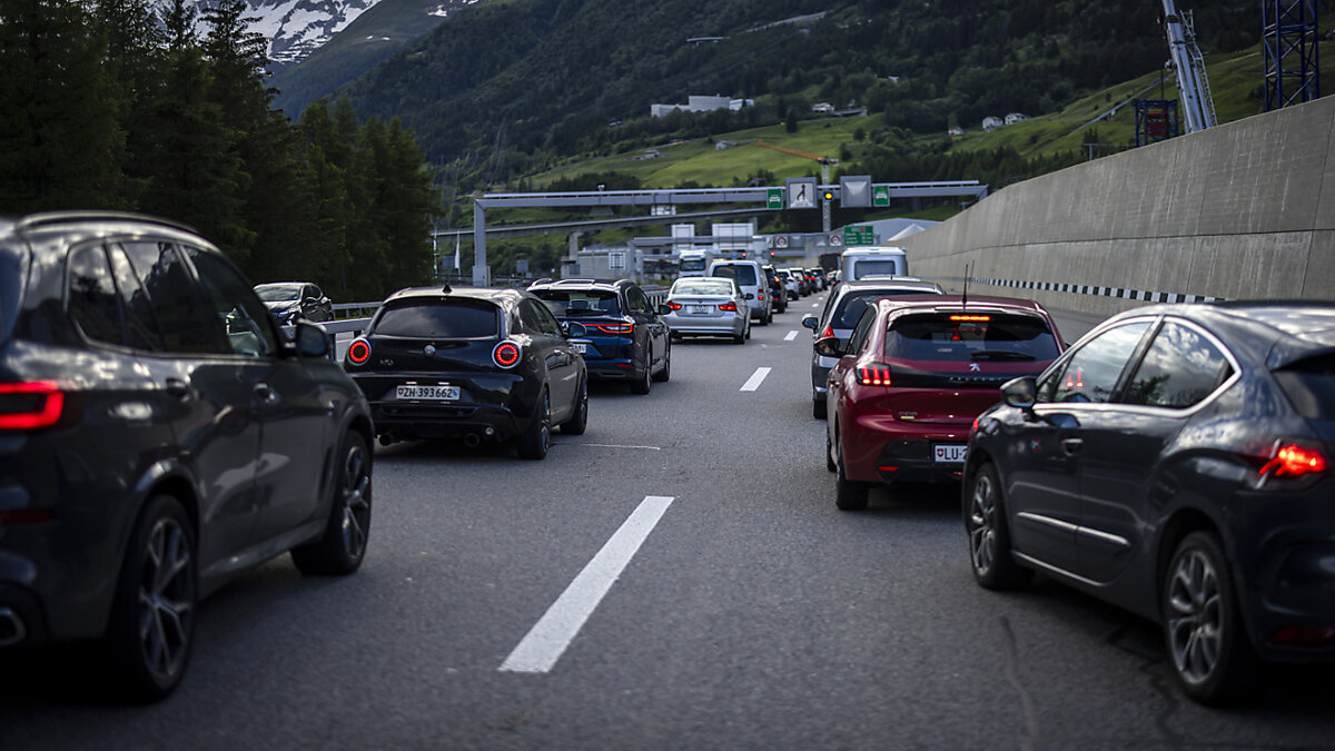 Bescheidener blieb dagegen der Verkehr Richtung Süden. In Göschenen UR vor dem Nordportal des Gotthardstrassentunnels stauten sich in der Mittagszeit die Fahrzeuge nur auf einer Länge von zwei Kilometern, einer Länge, die einer Wartezeit von 20 Minuten gleichkommt.