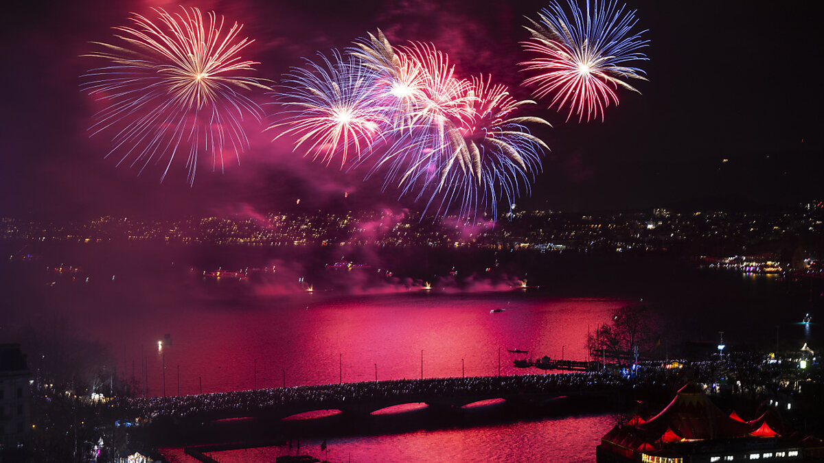 Die Zürcherinnen und Zürcher feiern den Jahreswechsel am Seebecken. Auch dieses Jahr findet der Silvesterzauber mit Marktständen und Festwirtschaften statt - mit bis zu 150'000 Zuschauerinnen und Zuschauern. Um 23.40 Uhr läuten die Kirchenglocken der Zürcher Innenstadt während knapp 20 Minuten das alte Jahr aus.