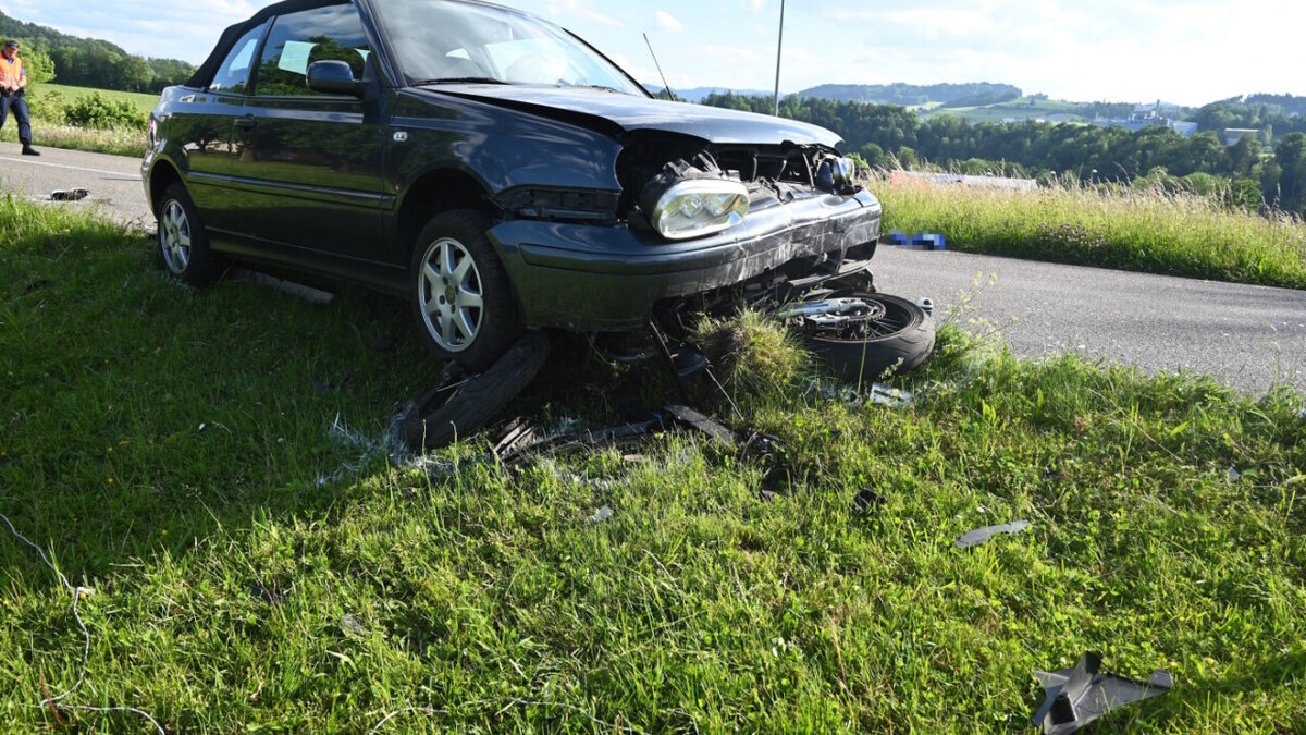 Der schwer verletzte Motorradfahrer wurde ins Spital geflogen. Der Autofahrer musste ebenfalls ins Spital gebracht werden. An beiden Fahrzeugen entstand Totalschaden.