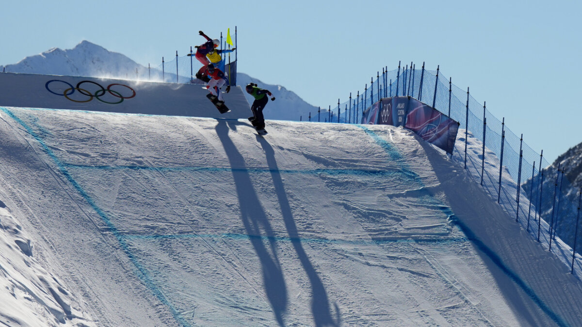 Snowboardcrosser im Teamwettkampf im Halbfinal out