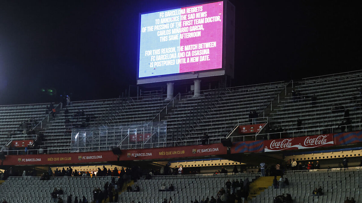 Die Partie in der spanischen Meisterschaft zwischen Barcelona und Osasuna wurde am Samstagabend abgesagt, weil der Teamarzt der Katalanen am Nachmittag verstorben ist, informierte der FC Barcelona.