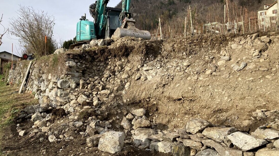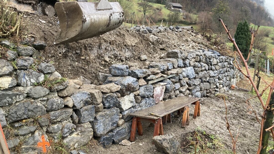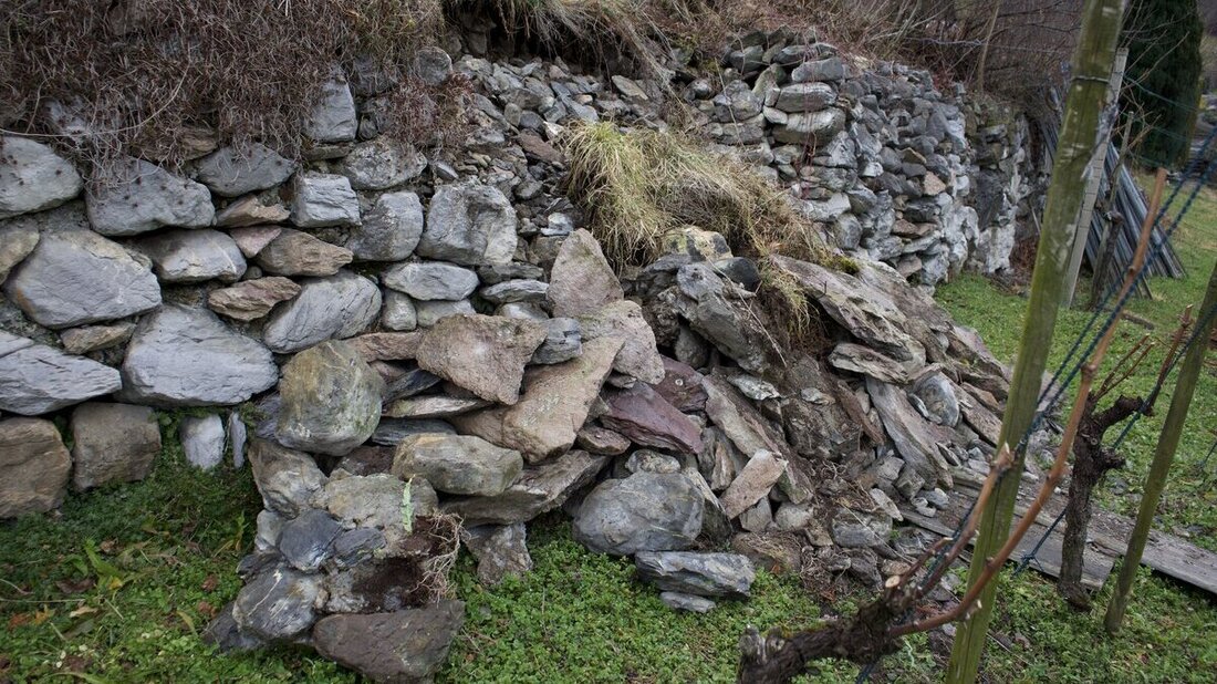 Trockensteinmauern sind wertvolle Biotope, die zahlreiche Tiere anziehen. Was aber, wenn eine solche Mauer zerfällt? Wer trägt die Kosten? Ein Beispiel aus dem Gebiet Halde in der Gemeinde Mels.